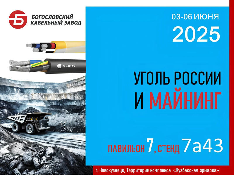 С 3 по 6 июня 2025 года Богословский Кабельный Завод представит свои инновационные решения для горнодобывающей промышленности на крупнейшей отраслевой выставке в Новокузнецке.